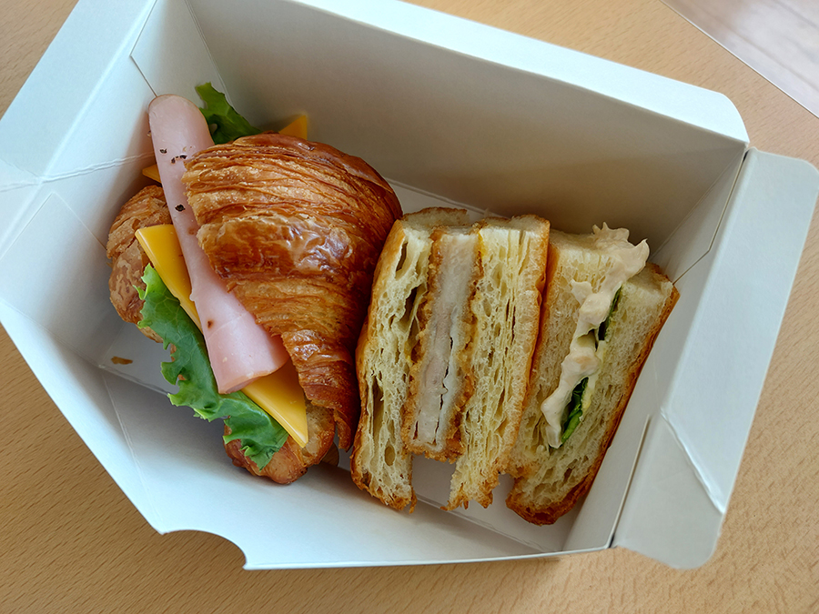 焼きたてクロワッサンにフレッシュなハムとチェダーチーズをサンドした、店舗で一番人気のクロワッサンサンド。そしてバターの風味豊かなサクサクのデニッシュパンには肉厚でジューシーなポークカツ、旨味とコクが絶妙に合わさったツナマヨをサンドしました。ボリューム満点な組み合わせが喜ばれています。